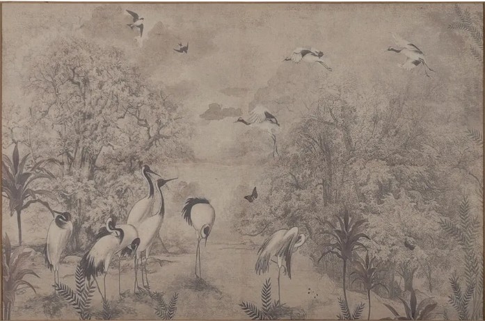 Añada un toque de elegancia atemporal y serenidad a su hogar con esta pieza decorativa. Este cuadro captura la esencia de la naturaleza a través de una ilustración detallada de grullas en un paisaje forestal. Su estética, que recuerda a los antiguos grabados asiáticos, combina perfectamente con ambientes que buscan un equilibrio entre lo clásico y lo contemporáneo.