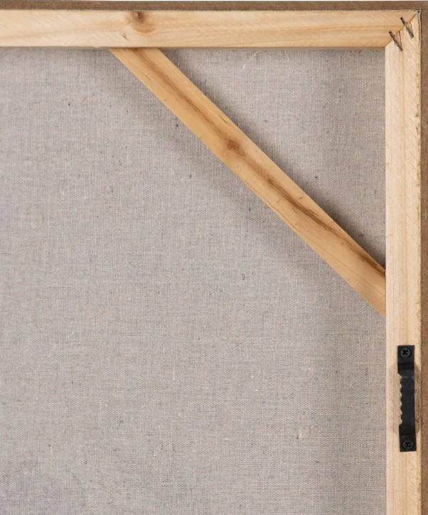 Lienzo sobre bastidor de madera y lámina enmarcada en madera.