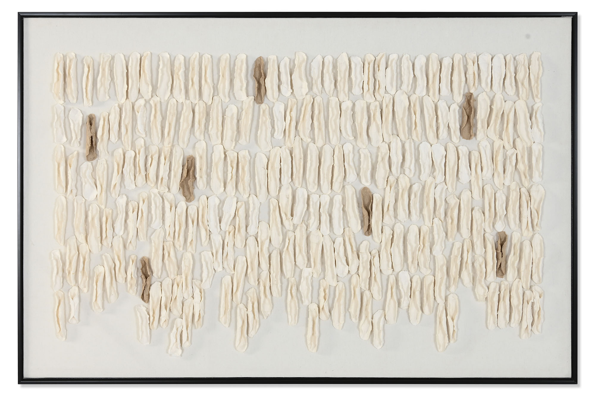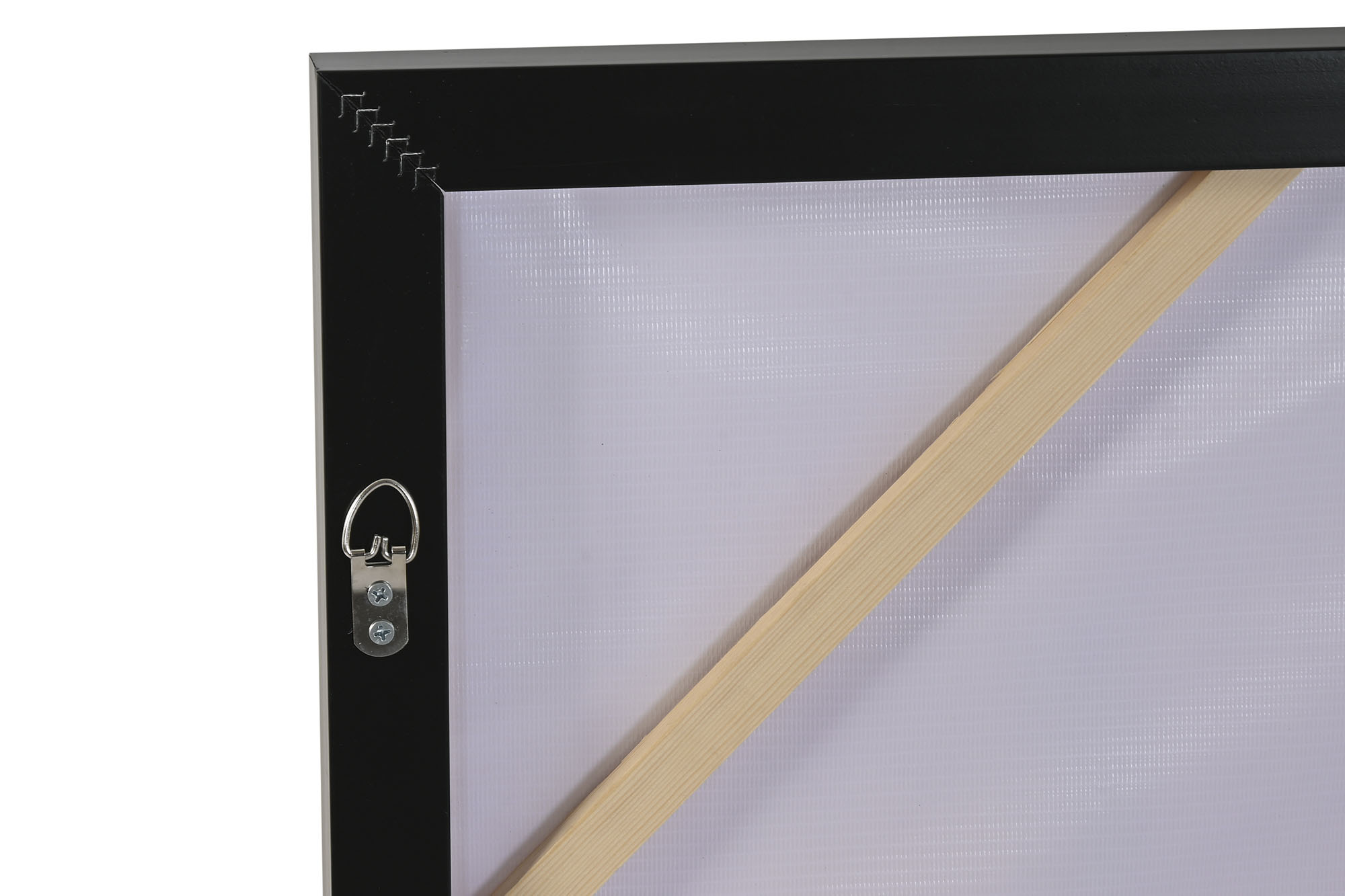Cuadro realizado en papel maché sobre lienzo en tono claro y con marco en color negro