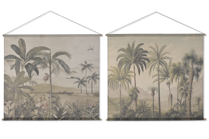 Transforma sus espacios con este conjunto de dos lienzos decorativos de inspiración botánica, que capturan la elegancia y serenidad de una jungla tropical. Cada pieza representa palmeras estilizadas sobre fondos neutros en tonos tierra y beige, con un delicado efecto envejecido que aporta carácter y sofisticación. La composición genera profundidad visual gracias a su disposición equilibrada de hojas y troncos, fusionando el estilo de ilustración científica con una estética decorativa refinada.