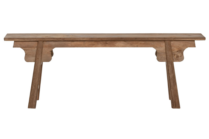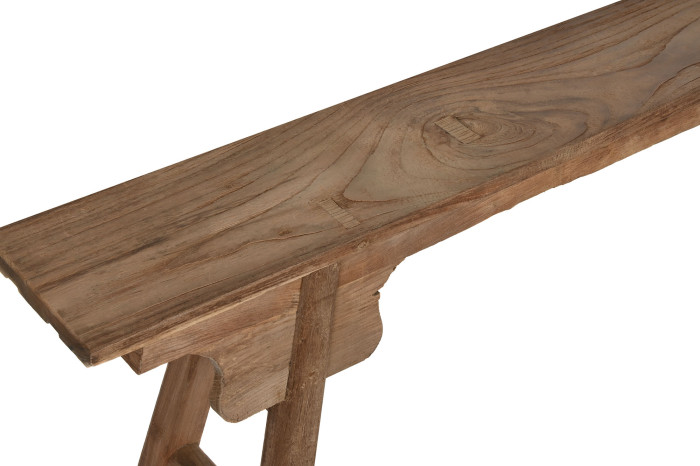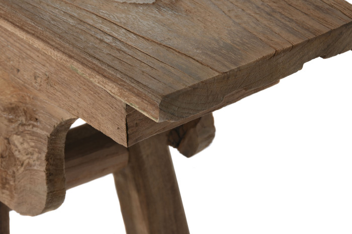 Banco fabricado en madera de teca reciclada natural, con un diseño sencillo y atemporal que aporta calidez a cualquier espacio.